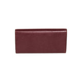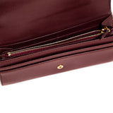 Details: Burgundy Leather / Gold-Tone Hardware / Stud Accent at Front / Three Compartments, One with Zipper Closure / 4-Bill Compartment and 10-Card Slots / Push Button Closure