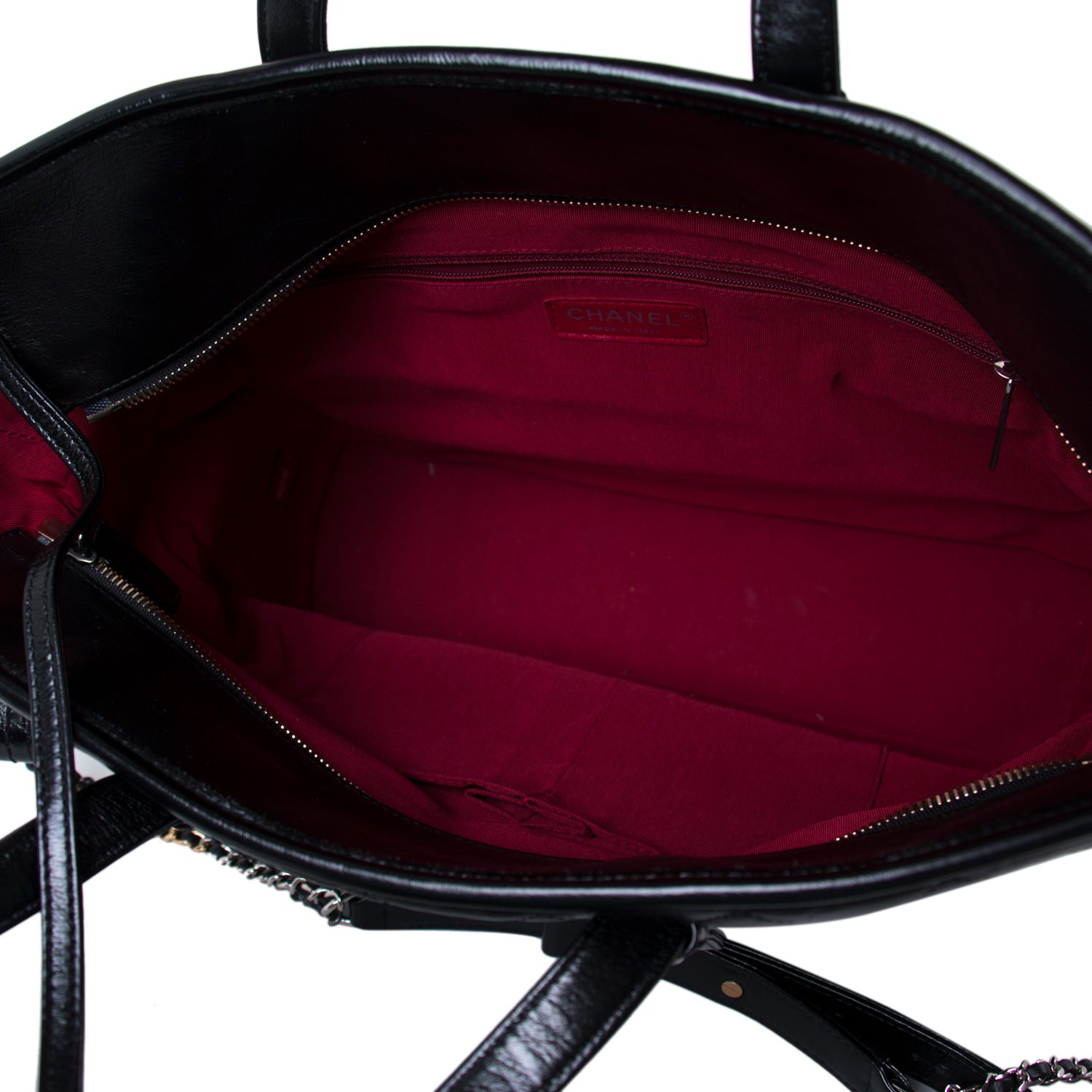 Details: Black Aged Calfskin Leather / Gold-Tone and Silver Hardware / Dual Rolled Handles / Detachable and Adjustable Shoulder Strap / Burgundy Fabric Lining / Dual Flat and Single Zipper Pocket / Zipper Closure at Top