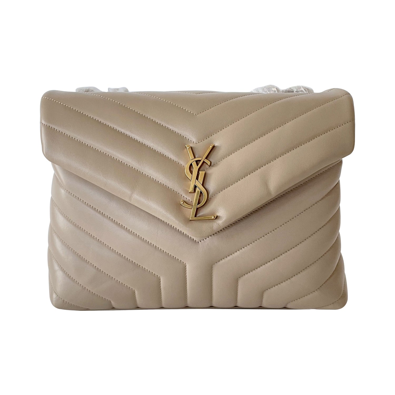 Description: Authentic New Beige Saint Laurent Medium Matelassé LouLou Leather Shoulder Bag