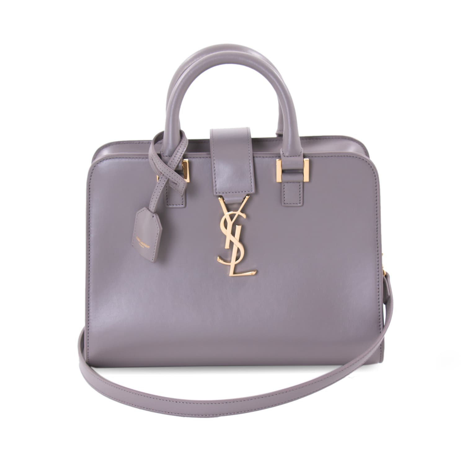 Details: Grey Calf Leather / Gold-Tone Hardware / Detachable Shoulder Strap / Dual Rolled Handles / Signature YSL Logo at Front / Black Leather Interior Lining / Single Flat Pocket at Inside / Dual Zipper Closure at Top