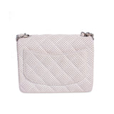 Details: Off-White Perforated Leather / Silver-Tone Hardware / Shoulder Strap / Exterior Pocket at Back / Single Compartment / Zipper Pocket at Inside / Turn-Lock Closure at Front Flap