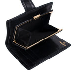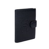 Details: Black Caviar Leather / Gold-Tone Hardware / Logo at Front Face / Coin Pouch / Bill Compartment / Three Card Compartments / Push Button Closure.