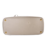 Details: Etaupe Saffiano Leather / Gold-Tone Hardware / Double Rolled Handles / Tonal Beige Jacquard Interior Lining / Three Large Compartments, Two With Zip Closure / Dual Slit Pockets At Interior Wall And Zip Pocket At Opposite Wall / Clasp Closure At Edges / Logo At Front Exterior / Key Chain Tethered At Handle