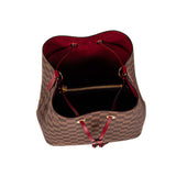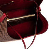 Details: Brown Damier Ebene Coated Canvas / Gold-Tone Hardware / Cherry Berry Detachable and Adjustable Shoulder Strap / Burgundy Micro Fiber Lining / 2 Compartments, with Zipper Pocket in the Middle / Pull-Through Closure at Top