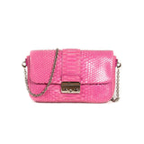 Details: Pink Python Skin / Silver-Tone Hardware / Detachable Chain Shoulder Strap / Pink Leather Lining at Interior / Single Compartment / Slit Pocket at Interior Wall / 6 Card Slots / S-Lock Closure at Front Flap