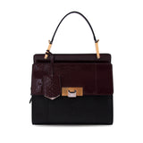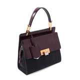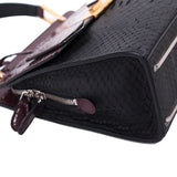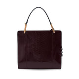 Details: Burgundy and Black Python Leather / Gold and Silver-Tone Hardware / Rolled Handle and Detachable Shoulder Strap / Flap Pocket at Front / Black Leather Interior Lining / Zipper and Dual Slit Pocket at Inside / Zipper Closure at Top
