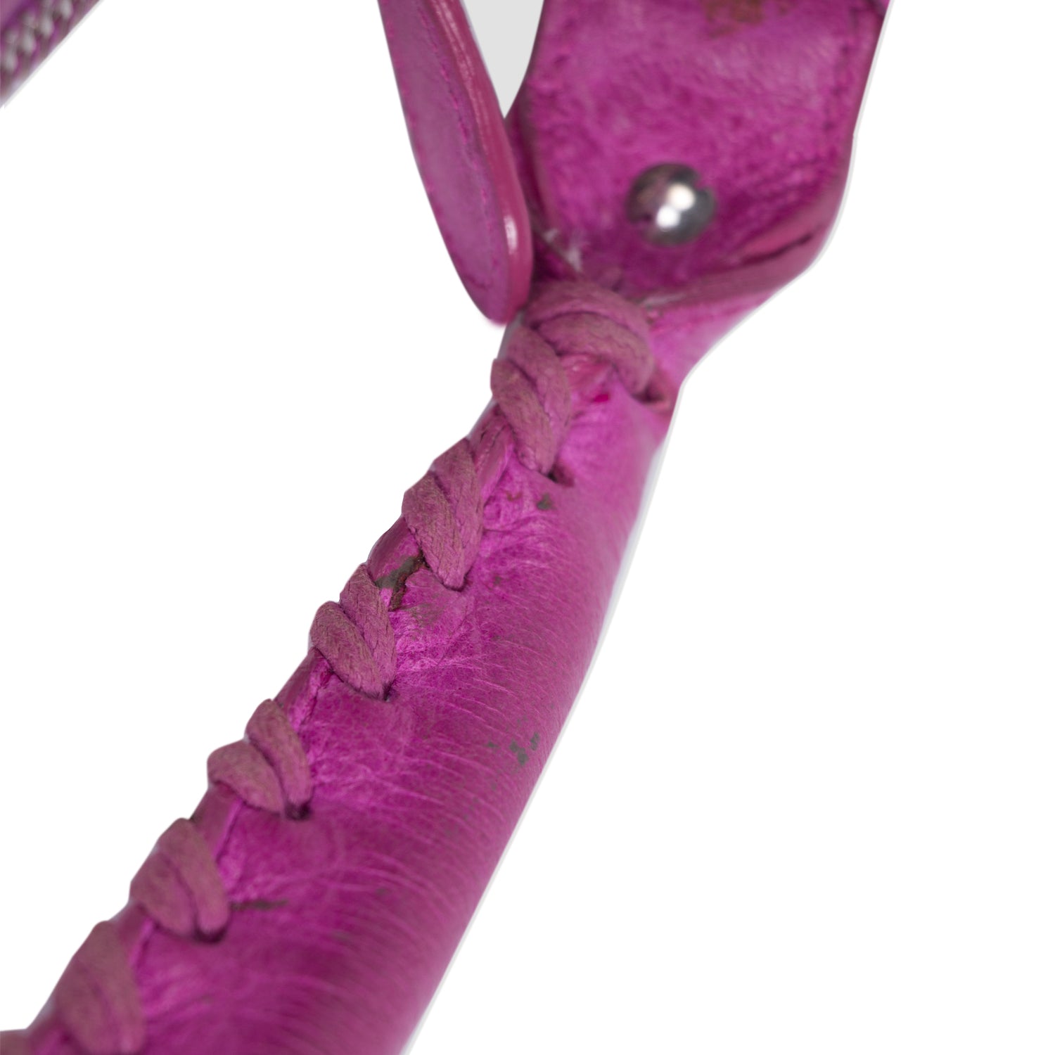 Details: Pink Leather / Gumetal Hardware / Whipstitched Handle / Zipper Pocket at Front / Black Woven Lining / Zip Pocket at Interior / Zip Closure at Top