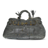 Details: Grey Leather / Large Size / Single Flat pocket / Single Cellphone Pocket / Single Zipper Pocket / Brass Hardware Metal Fitting / Brown Canvas Interior