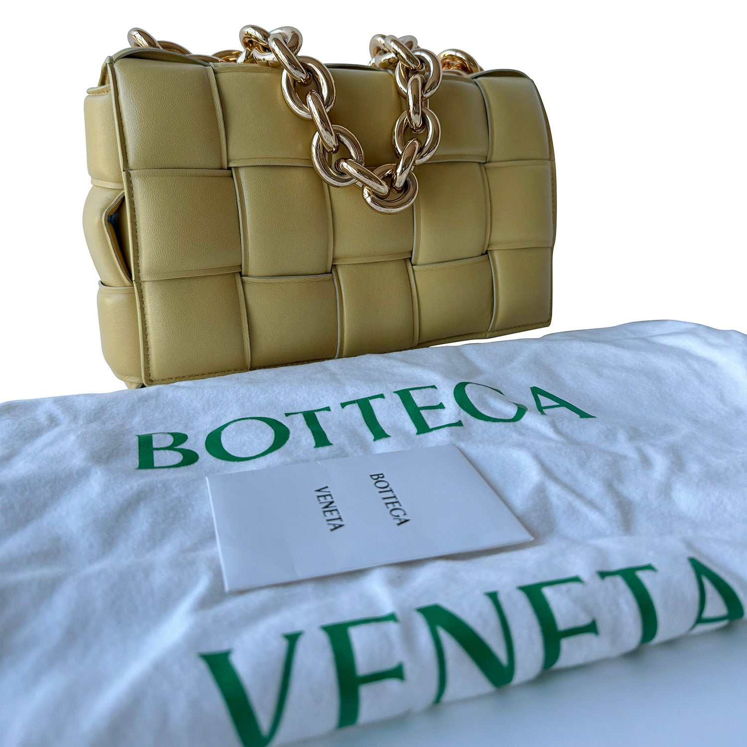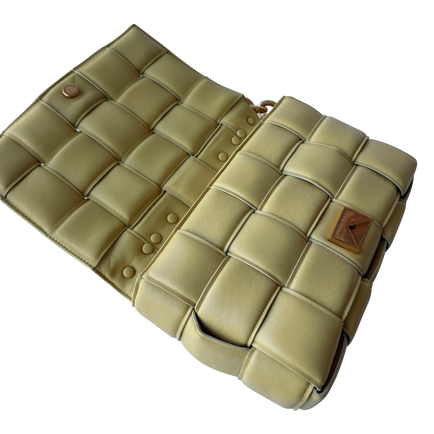 Description: Authentic Pre-Owned Bottega Veneta Casette Chain-Embelished Padded Intrecciato Leather Shoulder Bag