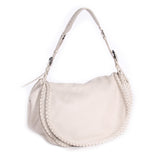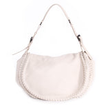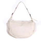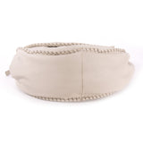 Details: White Waxed Deerskin Leather / Intrecciato Weaving on The Edges / Adjustable Leather Shoulder Stap / Gunmetal Hardware / Brown Interior Suede Lining / Single Large Zip Pocket At Interior Wall / Single Slit Phone Pocket At Interior / Front Flap Closure