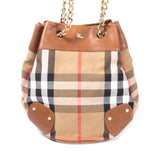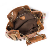Details: Beige And Multicolor Coated Canvas With Brown Leather / Gold Tone Hardware / Dual Chain-Link Shoulder Strap With Brown Leather Handle / Brown Leather Trim / Brown Woven Interior Lining / Single Compartment With Dual Slit Pockets And Single Zip Pocket / Logo Engraved Pins Embellishment Throughout
