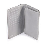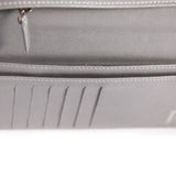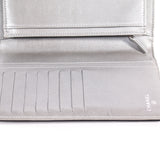 Details: Black Embossed Leather / Silver Tone Hardware / Interlocking CC At Front Face / Grey Leather Interior With Satin Lining / Eight Card Slots / Six Compartments One With Zip Closure / Fold Closure