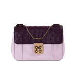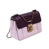 Details: Pink Leather and Burgundy Ostrich Leather / Gold-Tone Hardware / Chain Shoulder Strap / Leather Lining / Single Compartment / Flat Pocket at Inside / Turn-Lock Closure at Front Flap