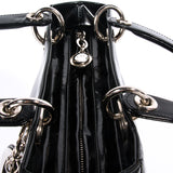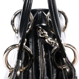 Details: Black Patent Leather / Dual Rolled Handles / Detachable Shoulder Strap / Silver-Tone Hardware / Red Patterned Interior Woven Lining / Single Zip Pocket At Interior Wall / Zip Closure At Top