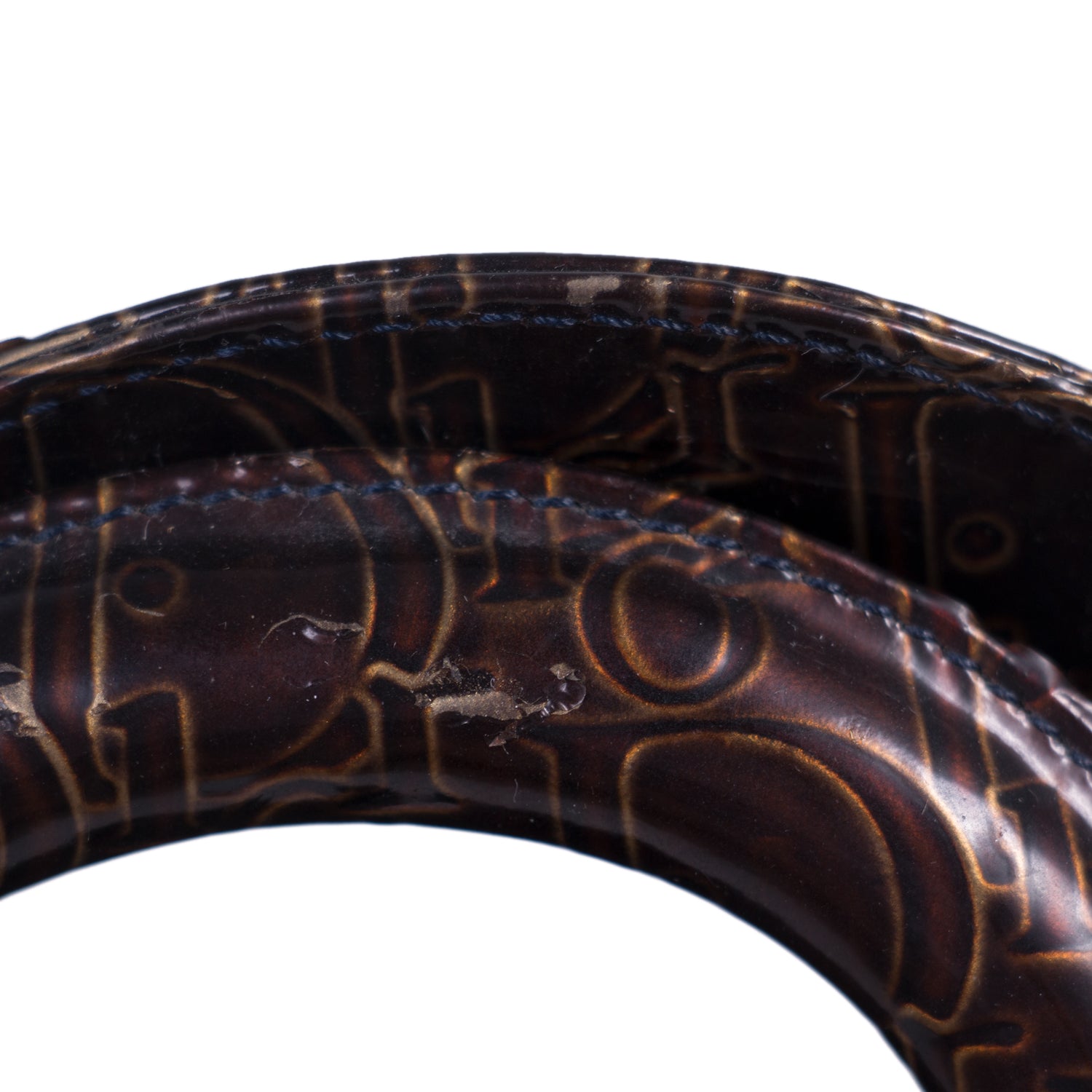 Details: Black and Gold Patent Leather with Logo Prints Throughout / Silver-Tone Hardware / Dual Rolled Handles / Detachable Shoulder Strap / Logo Charm at Front / Black Fabric Interior Lining / Flap Closure at Top