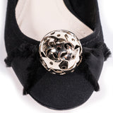 Details: Limited Edition / Black Satin / Inside Black Leather / Rounded Toe / Bow Christmas Ball Embellishment At Front /