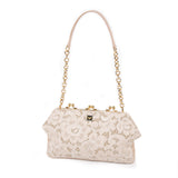 Description: Authentic Dolce & Gabbana Tan Floral Fabric Bag