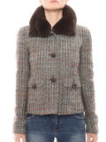 Details: Green Color / Tweed Jacket / Flap Pockets at Sides / Button Closure / Embellished Collar / Button Closure at Front