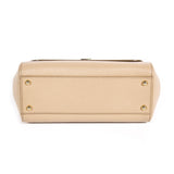 Details: Tan-Colored Leather / Gold-Tone Hardware / Detachable Adjustable Shoulder Strap / Single Rolled Handle / Metal Plate Logo At Front / Protective Studs At Base / Leopard Print Satin Lining At Interior / Single Compartment / Three Pockets One With Zip Closure / Magnetic Snap Closure At Front Flap
