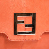 Details: Orange Suede / Shoulder Bag / Silver-Tone Hardware / Single Flat Shoulder Strap With Metal Embellishment / Grey Woven Lining / Single Pocket At Interior Wall With Zip Closure / Flap Magnetic Snap Closure At Front / Fendi F Logo At Front