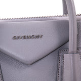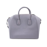 Details: Grey Goatskin Leather / Silver-Tone Hardware / Dual Rolled Handles / Detachable Shoulder Strap / Logo at Front / Black Fabric Interior Lining / Two Flat Pockets and One Zipper Pocket at Inside / Zipper Closure at Top