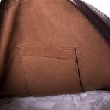Details: Beige-Ebony GG Supreme Coated Canvas With Gucci Bengal Print / Brown Leather Trim / Embossed Logo Patch At Front Face / Adjustable Signature Green And Red Web Straps / Flat Leather Handle / Brass Hardware / Exterior Zip Pocket At Front Face / Microfiber Lining With Suede Finish At Interior / Interior Pocket For Laptop / Two Smartphone Pocket / Two-Way Zip-Around Closure