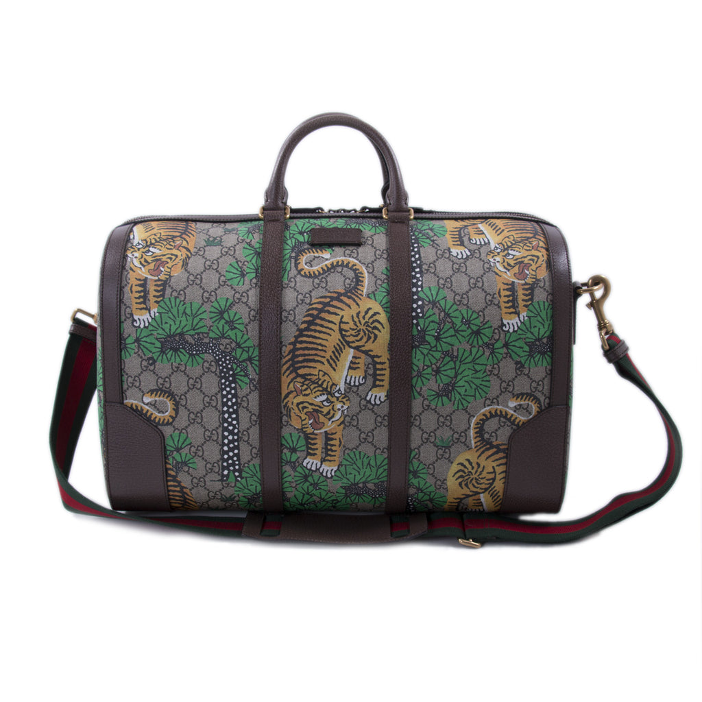 Description: Authentic New Gucci Bengal GG Supreme Weekender Duffle Bag
