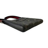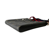Blue and Red Web Strap with Leather Pad / Exterior Zip Pocket at Front / One Compartment with 2 Slit Pockets and Zipper Pocket / Zipper Closure