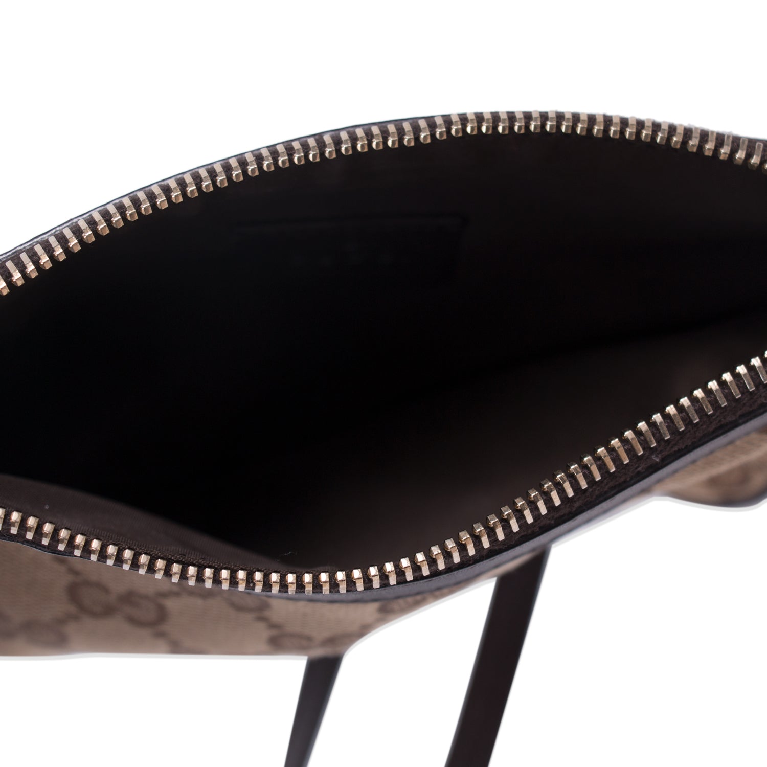 Details: Brown GG Canvas / Gold-Tone Hardware / Brown Leather Trim / Adjustable Shoulder Strap / Fabric Interior Lining / Zipper Closure at Top