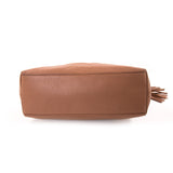Details: Gold Brown Leather / Gold-Tone Hardware / Dual Chain-Link with Leather Pad Shoulder Strap / Logo at Front Face / Tassel Embellishment / Natural Lining at Interior / Three Pockets one with Zipper / Lobster Clasp Closure at Top