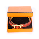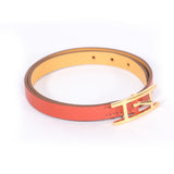 Details: Red And Tan Calfskin Leather / Gold Tone Hardware / Buckle Closure