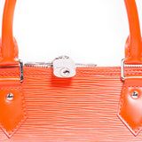 Details: Chili Red Epi Leather / Dual Toron Handles For Comfortable Hand Carry / One Interior Flat Pocket / Two Smartphone Pockets / Double Zip Opening For Easy Access / Silver Color Metallic Pieces / Silver Lock and Two Keys