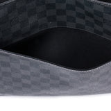 Details: Black And Grey Men Messenger Bag In Damier Graphite Coated Canvas Leather / Black Leather Trim / Silver Tone Hardware / Zip Pocket At Exterior Pocket / Woven Adjustable Shoulder Strap / Woven Interior Lining / Large Slit Pocket Underlay / Single Large Compartment With Two Interior Small Pockets / Magnetic Snap Closure At Interior