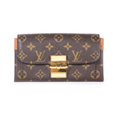 Details: Clutch Wallet / Brown And Tan Coated Monogram Canvas / Flap Front Closure / Vachetta Cowhide Interior Leather / Polished Brass Hardware Clasp / Features Central Zipper Pocket / Twelve Card Slots / Three Compartments /