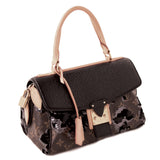 Details: Brown Monogram Coated Canvas / Brass Hardware / Single Handle / Tan Vachetta Leather Trim / Grey Silkscreen with Black Floral Sequin and Velvet Flocking Throughout the Exterior / Brown Fabric Lining / Single Flat Pocket / Zip at Top and S-Lock Closure at Front Flap