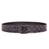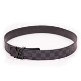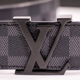 Details: Damier Graphite Canvas Leather / Black Lacquer LV Buckle / Nubuck Leather Lining / Peg-In-Hole Buckle Closure
