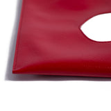 Details: Red Saffiano Leather / Gold-Tone Hardware / White Flower Embellishment at Front / Flat Handle at Back / Black Leather Interior Lining / Flat and Zipper Pocket at Inside