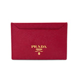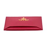 Details: Red Saffiano Leather / Gold-Tone Hardware / Logo at Front / Two-Card Compartment / Centre Slot Compartment