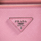 Details: Pesco and Natura (Pink and Tan) Saffiano Leather / Silver-Tone Hardware / Dual Rolled Handles / Detachable Adjustable Shoulder Strap / Pink Interior Lining / Three Compartments, Two with Zipper Closure / Flat and Zipper Closure at Inside