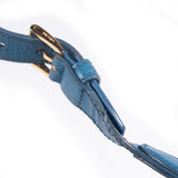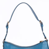 Details: Blue Leather / Gold-Tone Hardware / Single Adjustable Shoulder Strap / Luggage Name Tag Attached / Single Compartment / Dual Slit Pockets At Interior Wall / Zip Pocket At Interior / Zip Closure At Top