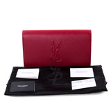 Details: Red Leather / Logo at Front Face / Black Satin Interior Lining / Interior Slit Pocket / Magnetic Snap Closure at Front
