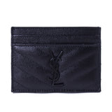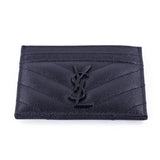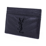 Details: Black Grained Leather / Black Metal YSL Designer Logo Embellishment at Front Face / Dual Card Slots at Front and Back / Single Compartment in the Middle