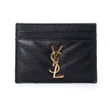 Details: Black Grained Leather / Gold Tone YSL Designer Logo Embellishment at Front Face / Dual Card Slots at Front and Back / Single Compartment in the Middle