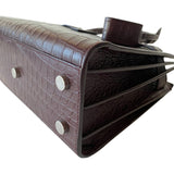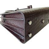 Burgundy Crocodile Embossed Leather / Silver-Tone Hardware