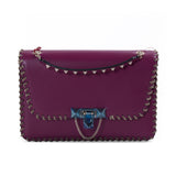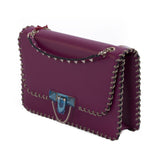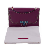Details: Fuchsia-Hued Leather / Gold-Tone Hardware / Chain and Leather Shoulder Strap / Rockstud Embellishments / Pocket at Exterior Back / Interior Suede Lining / Internal Zipped and Slot Pockets / Slot-Tab Fastening Closure