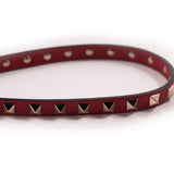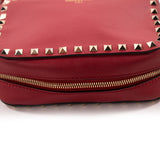 Details: Red Smooth Leather / Gold-Tone Hardware / Adjustable Long Shoulder Strap / Stud-Embellishments Throughout and on the Shoulder Strap / Logo at Front Face / Beige Canvas Lining at Interior / Single Flat Pocket / Double Zip Closure at Top