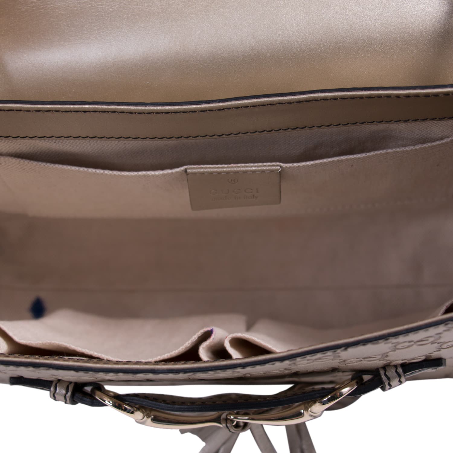 Description: Authentic Pre-Owned Gucci Emily Medium Metallic Leather Chain Shoulder Bag