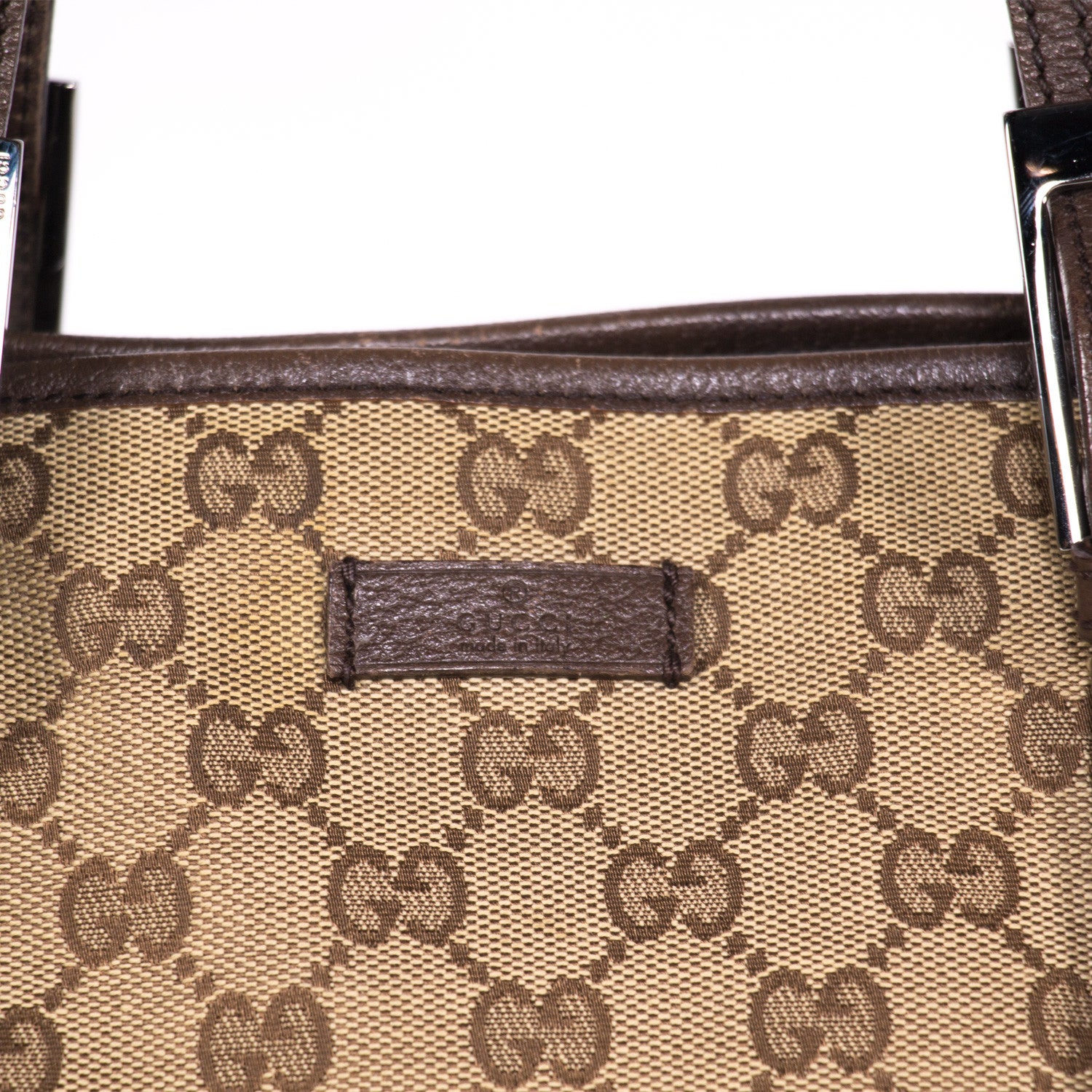 Details: Brown Monogram GG Canvas / Silver-Tone Hardware / Dual Rolled Adjustable Handles In Brown Leather And Web Canvas / Brown Leather Base With Studs / Brown Interior Canvas Lining / Single Zip Pocket At Interior / Slit Phone Pocket At Interior Wall / Zip Closure At Top