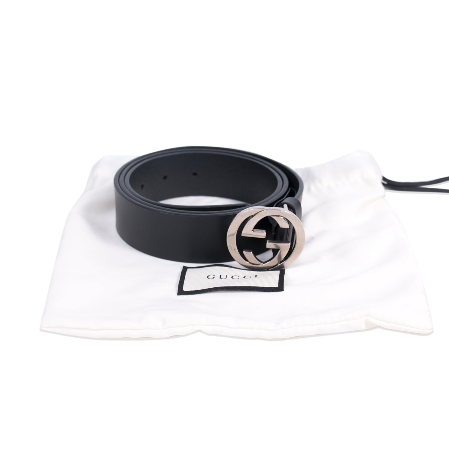 Description: Authentic Pre-Owned Gucci GG Interlocking Black Leather Belt