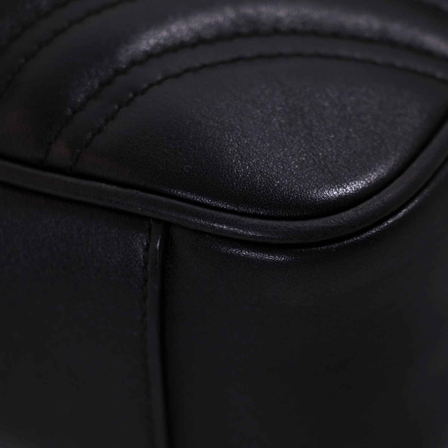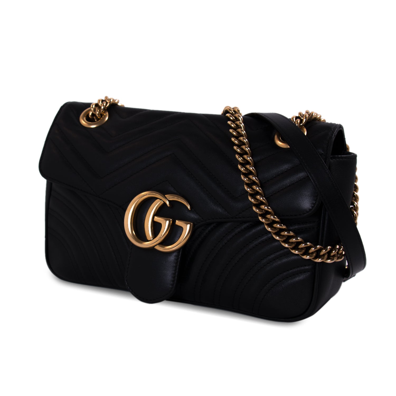 Details: Black Quilted Chevron Leather / Gold-Tone Hardware / Chain-Link and Leather Pad Shoulder Strap / Double G Logo at Front / Micro-Fiber Suede Interior Lining / Zipper Pocket at Inside / Push Button Flap Closure at Top